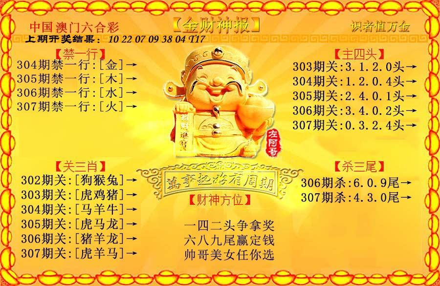 | 307期必中二肖:鸡龙 | 307期必中③码:33.45.02 |